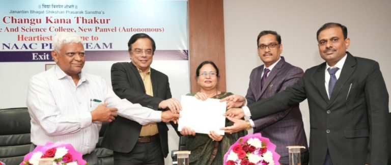 पनवेल दि.17: जनार्दन भगत शिक्षण प्रसारक संस्थेच्या खांदा कॉलनी मधील चांगू काना ठाकूर (सीकेटी) आर्टस्, कॉमर्स अॅण्ड सायन्स कॉलेजच्या चौथ्या मूल्यांकनाच्या फेरीसाठी नॅक पीअर टीमने 2 आणि 3 डिसेंबर 2024 रोजी भेट दिली होती. या मूल्यमापनामध्ये राष्ट्रीय मूल्यांकन आणि मान्यता परिषदने (नॅक) महाविद्यालयास 3.52 सी.जी.पी.ए. सह ‘ए++’ हे सर्वोच्च मानांकन शुक्रवारी प्रदान केले गेले. या … Continue reading सीकेटी महाविद्यालयास नॅकचे A++ मानांकन; राज्यातील स्वायत्त महाविद्यालयांमध्ये ‘सीकेटी’ दुसऱ्या क्रमांकावर !