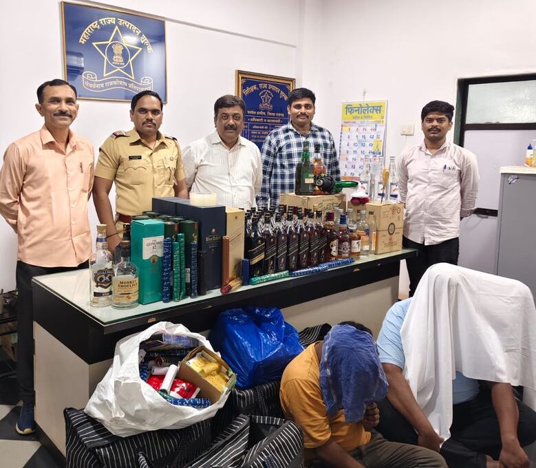 राज्य उत्पादन शुल्क विभागाने पनवेल तालुका पोलीस स्टेशन हद्दीत जुना मुंबई पुणे हायवेवर पोयंजे गावाच्या हद्दीत दारुबंदी गुन्ह्याकामी सापळा रचुन एका चारचाकी वाहनामध्ये वेगवेगळ्या ब्रँडच्या उच्च प्रतीच्या बनावट विदेशी मद्याच्या १२ बाटल्या, ०२ मोबाईल व एक चारचाकी वाहन असा एकूण ५,६०,३९०/-रुपये किंमतीचा मुद्देमाल जप्त केला. यावेळी आरोपीकडे सदर अधिक तपास केला असता त्यांनी दिलेल्या माहितीनुसार खालापूर येथील तुपगाव येथील एका शेतातील घरामध्ये जाऊन छापा टाकला असता त्या ठिकाणी वेगवेगळ्या उच्च प्रतीच्या बनावट विदेशी मद्याच्या ५० बाटल्या विदेशी मद्याच्या १७ बाटल्या देशी मद्याच्या ०४ बाटल्या, ०२ मोबाईल, रिकाम्या चाटल्या, बनावट बुचे, बनावट कागदी लेवले व इतर साहित्य असा एकूण ५ लाख .७८ हजार ४४० रुपये किमतीचा मुद्देमाल जप्त केला. सदर दोनही ठिकाणी मिजून एकूण १९ लाख ३८ हजार ८३० इतक्या किमतीचा मुद्देमाल जप्त करून आरोपी नामे बिन्नु कल्लूर, विनेश्वर एथ, एस, बिजू उरवा या इसमांवर महाराष्ट्र दारूबंदी अधिनियम १९४९ अन्वये गुन्हा नोंदवून अटक करण्यात आली. सदर कारवाई निरीक्षक राज्य उत्पादन शुल्क अनिल बिराजदार, राज्य उत्पादन शुल्क कर्ज विभाग निरीक्षक पी. एस. रासकर, निरीक्षक अजित बहरे, सुरेश झगडे, व्वाली भरणे, एम. पी. आगळे, सहाय्यक दुष्यनिरीक्षक निनाव पालवे, जवान ऋषिकेश भोगे, लक्ष्मण हाके, रोहित पाटील, अंकुश जज्जर, धनश्री माळी यांनी यशस्वीरित्या पार पाडली. सदरील गुन्हयाचा पूढील तपास राज्य उत्पादन शुल्क अधीक्षक रविकिरण कोले यांच्या मार्गदर्शना खाली दुष्यनिरीक्षक अजित बहरे करीत आहेत.